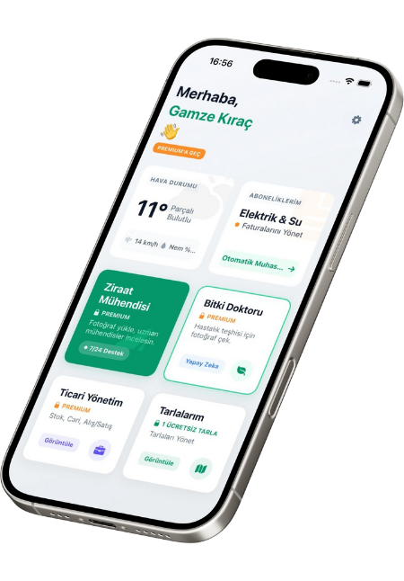 Tarım Asistanı ile tarlanızı anlık olarak ölçün, hava koşullarını takip edin ve bitki hastalıklarını yapay zeka desteğiyle erken tespit edin.